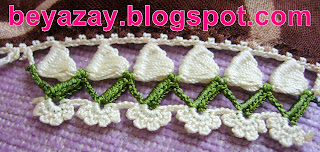 Bu yazma tığ oyası modellerini komşum İlviye ablanın model olarak kullandığı yazmanın kenarlarından çektim.